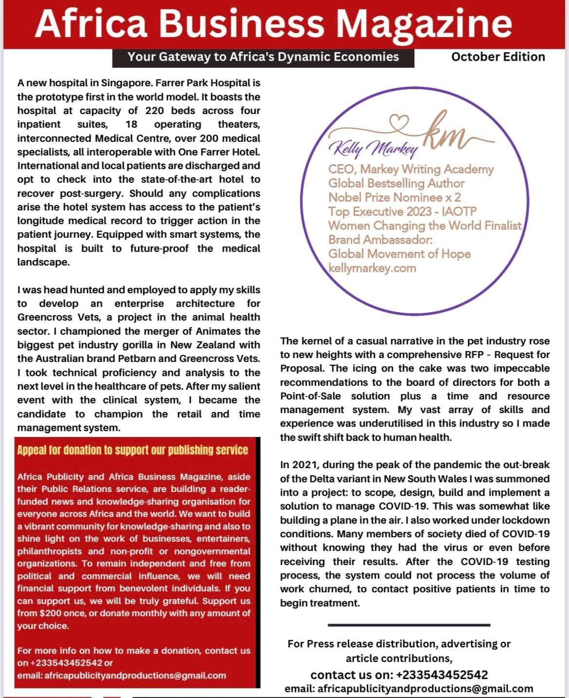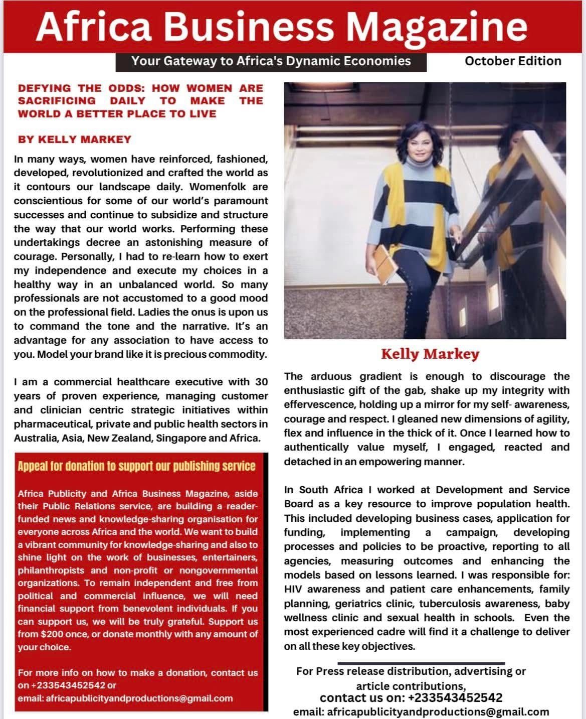Our founder, Kelly Markey, has been featured in numerous prominent publications globally, including top newspapers and magazines in the US, South Africa, Ghana, Australia, and beyond. She has also been featured on the prestigious Nasdaq billboard in New York Times Square.